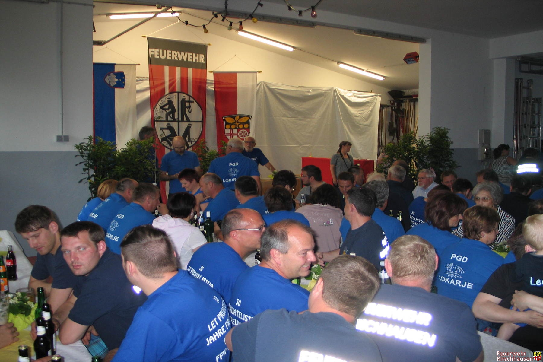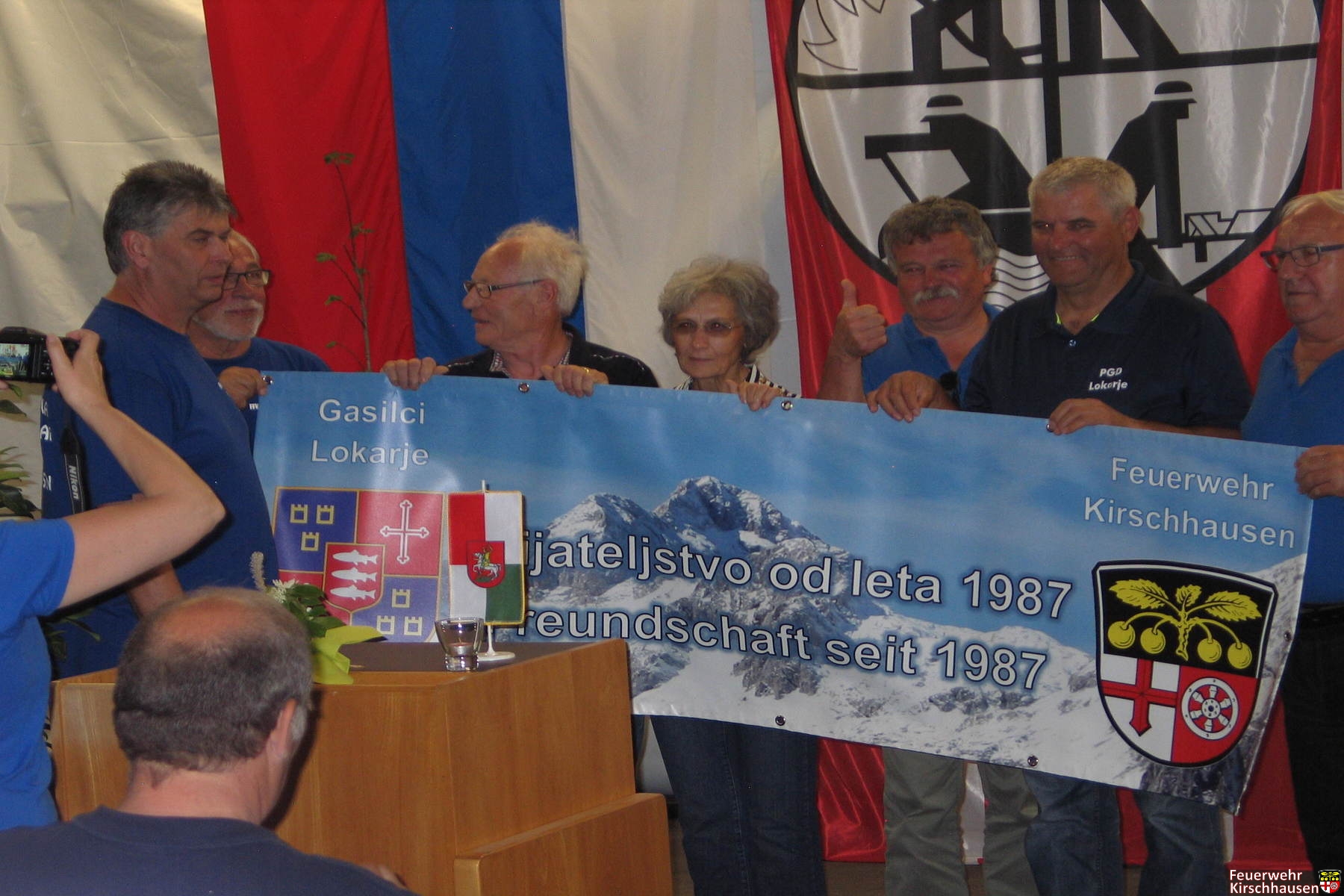 Wehrführer Manfred May begrüßte die 36 Gäste aus Lokarje unter deren tosendem Beifall auf Slowenisch. „Nach 30 Jahren ein Satz“, scherzte er über sich selbst. Viel habe man miterlebt, etwa den Zehn-Tage-Krieg und die Gründung des Staates Slowenien im Jahre 1991. Die slowenische Fahne wurde übrigens das erste Mal beim Umzug zum 90-jährigen Jubiläum der Feuerwehr Kirschhausen im Ausland getragen. Man hat gemeinsam also auch ein Stück Geschichte geschrieben, das beide Seiten bis heute stolz macht.