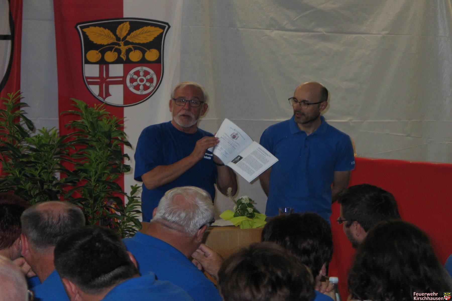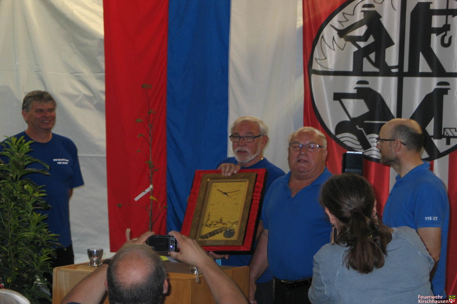 „Es war einmal ein Mann“, begann Feuerwehrvereinsvorsitzender Hennes Barz im Rahmen der Feierstunde im festlich geschmückten Feuerwehrgerätehaus seinen unterhaltsamen Rückblick auf die Geschichte. Dieser Mann war Franz Rantschigei. Der war gebürtiger Slowene und lebte in Viernheim. Er suchte ein Feuerwehrfahrzeug für sein Heimatland und erfuhr, dass die Kirschhäuser ihren Unimog verkaufen wollten – und man wurde handelseinig. 1987 reisten schließlich vier slowenische Kameraden an, um den Unimog zu überführen.